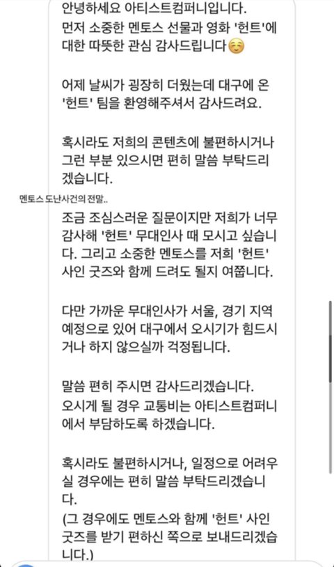 그리고 멘토스 도난 사건에 책임지는 소속사