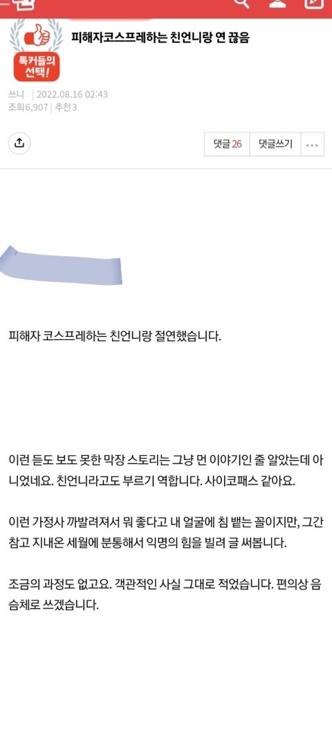 피해자코스프레하는 친언니랑 연끊음