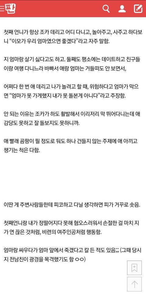 자기엄마에 본인들까지 뭐라고하니 글삭튀