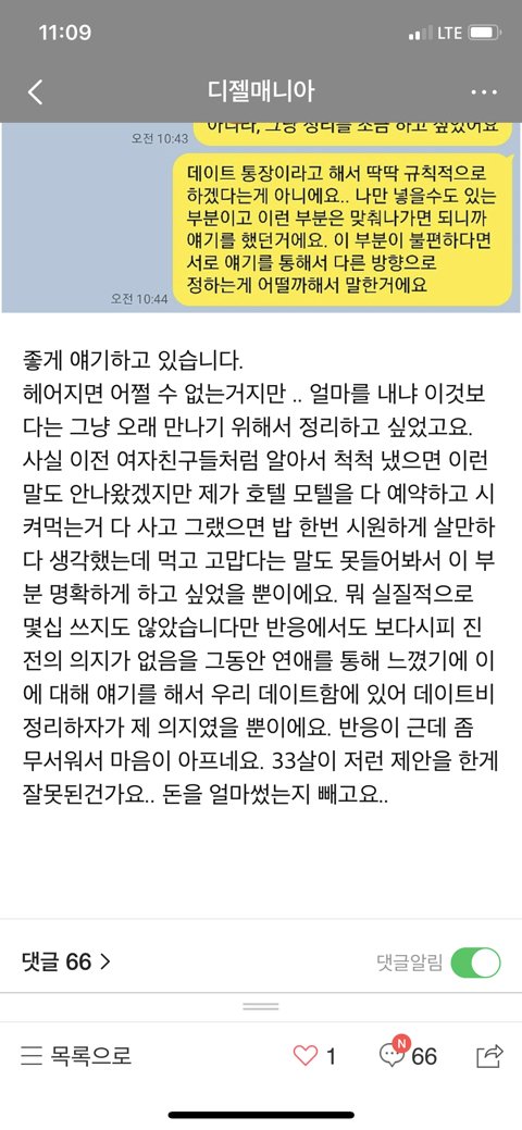 데이트통장 요구하다 차인 한남
