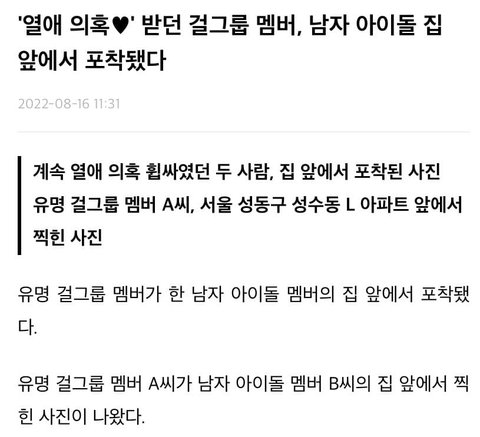 류진 해찬 숙소앞에서 찍힌 기사났네