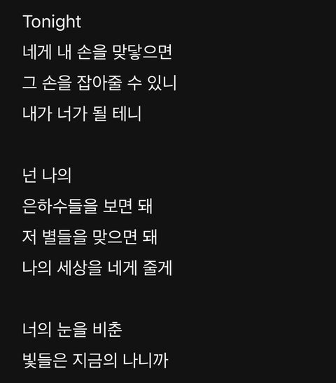 난 뷔가 외모만 잘생긴게 아니라 음악듣는 취향도 진짜 폭넓고 작사도 잘해서 좀 놀랬음~ 목소리 좋고 최근 브이로그랑 인숲 보게됐는데 몬가 볼수록 힐링되는 사람인것 같음~