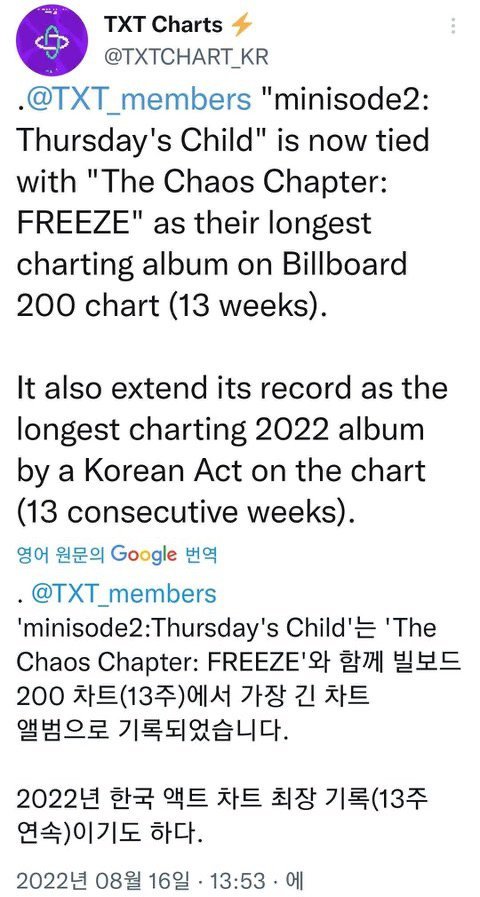 13주 차트인~~올해케이팝 최장기간 차트인~~~~~~