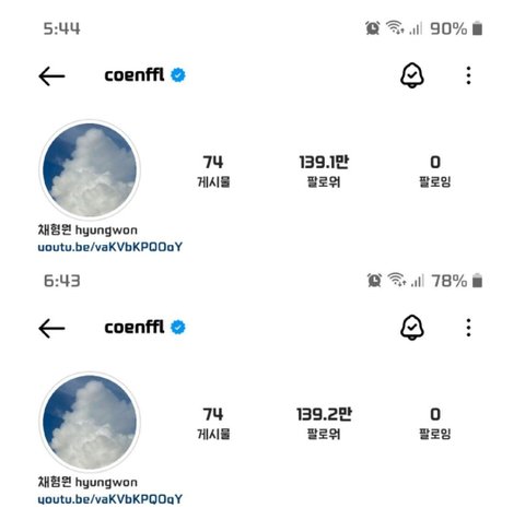 실시간 채형원 인스타 팔로워