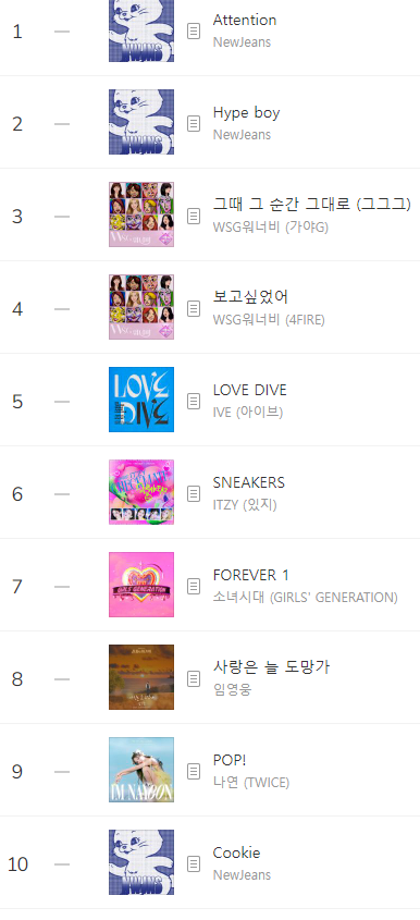 좋지도 않은데 덕후들 스밍빨로 높은순위 유지하던 아이브랑은 다르네 역시 대중에게 사랑받는 노래