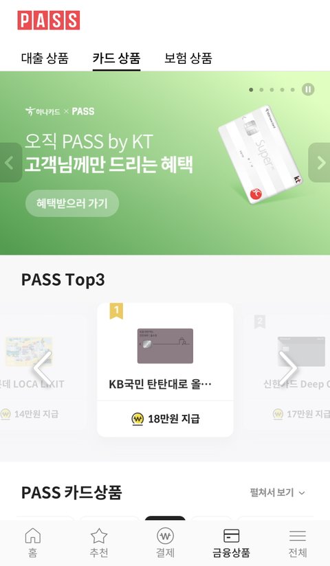 KT PASS에 카드 혜택 비교 할 수 있는데 금융상품 들어가면 캐시백 받을 수 있는 카드 발급도 할 수 있더라구카드별로 캐시백 혜택 확인할 수 있는데 짐 이벤트 하고 있어서 최대 18만원까지 가능한 카드가 있어서 발급 받았다!! 국민카드, 롯데카드. IBK카드가 신규 발급 혜택이 가장 커서 카드 발급 하실꺼면 한번 신청해봐참고로 카드 발급도 하고 응모도 해야 혜택 받을 수 있음!