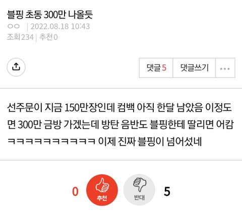 총 302만장 선주문됨.