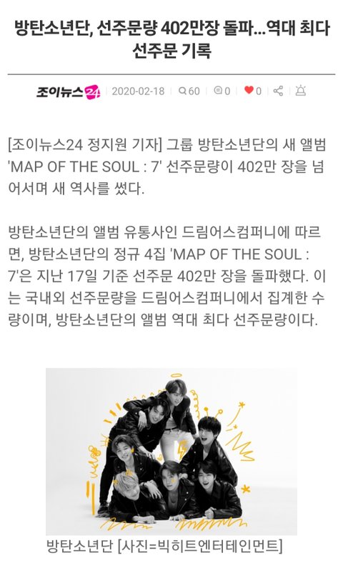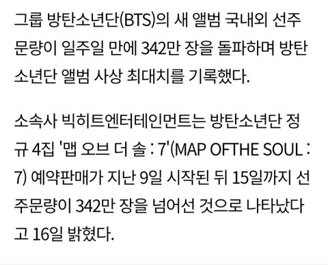 맵솔 (2020) 앨범은 일주일만에 선주문량 342만장 찍음,