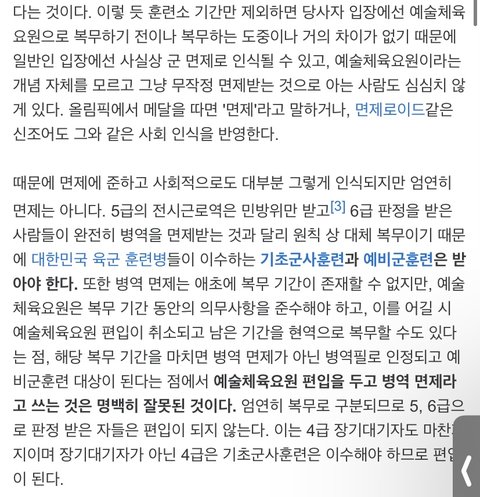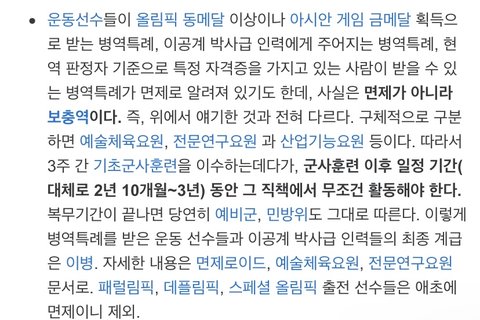 혹시 이걸 말하는건가 이거 읽어봐 걍 관례?상 면제라고는 하는데 원칙상 ㄷㅊㅂㅁ는 수행한대 운동선수랑 콩쿨수상자 찐 면제는 6급 판정 받은 사람이고 걍 궁금해서 찾아봄 ㅇㅇ 나도 첨 알았어