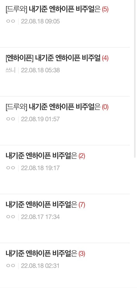 내 기준 엔하이픈 비주얼이라는 제목으로 아침 저녁 새벽 꾸준히 엔하이픈 멤버들 최대한 못나온 사진 올리는 정병 있거든? 얘 아예 먹금 댓도 달지 말고 댓글 추천 반대 아무것도 하지마 그냥 무시가 답임 그리고 만약에 들어가면 도배성 게시물로 신고 눌러줘