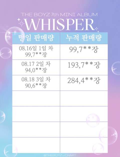 추이는 나쁘지않으니까 이렇니 저렇니 하지말고 남은기간동안 앨범많이사자