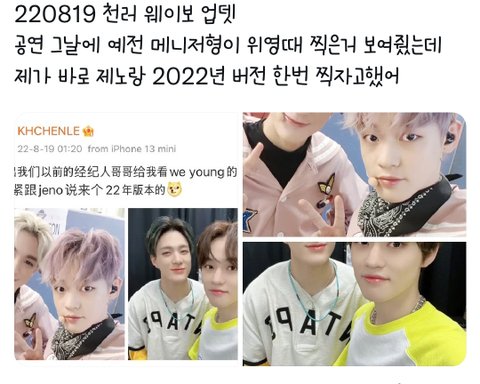 애드라... 천러가 올려준 제노랑 리마인드 셀카ㅜ