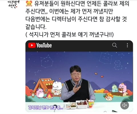 콜랍 먼저 제의한 석지니