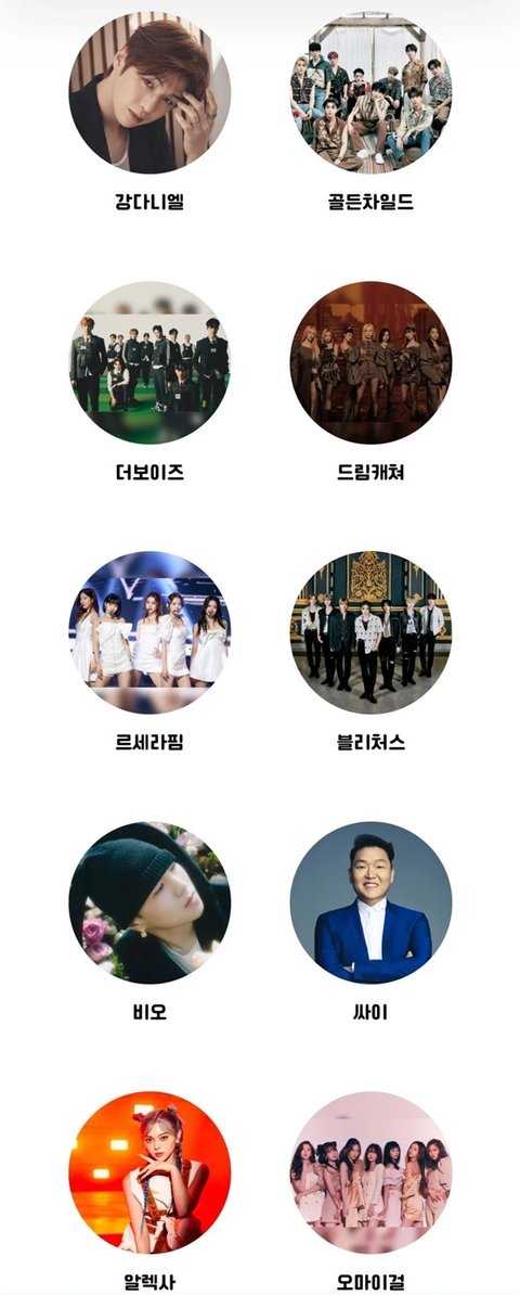 케플러, 강다니엘, AB6IX, 싸이, TNX, 알렉사, 블리처스, 이무진, 비오, 골든차일드,