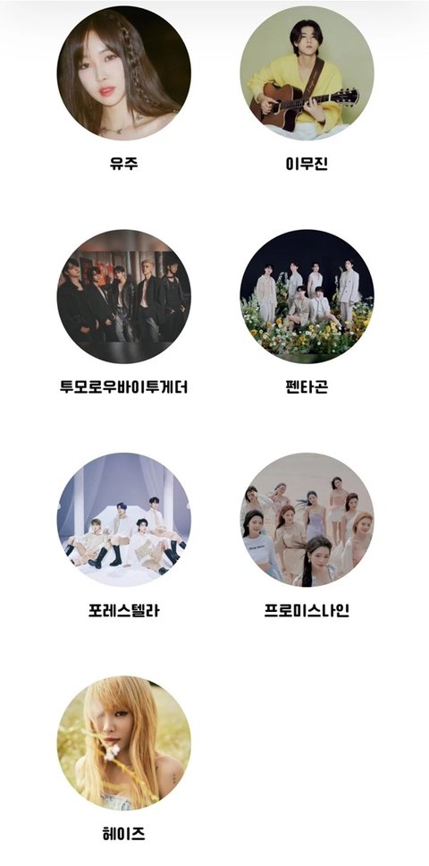 드림캐처, 프로미스나인, 비비지, 헤이즈, 유주, 펜타곤, 포레스텔라, SF9