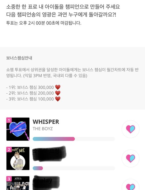 쇼챔 투표 열렸어요❗️❗️❗️다들 ㄱㄱ