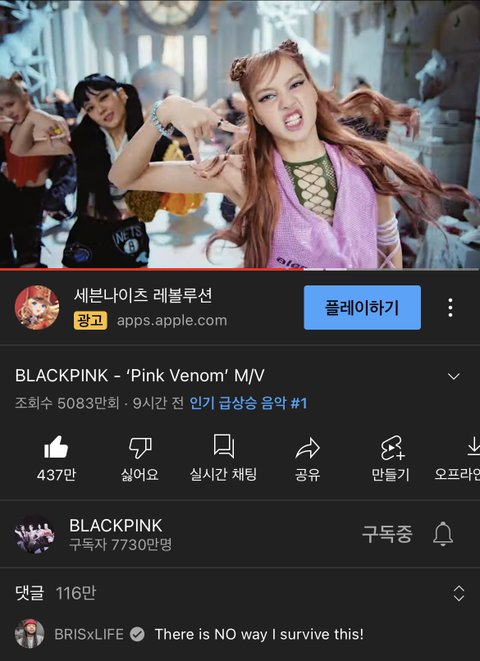 공개 9시간 만에 유튜브 조회수 5천만 찍음