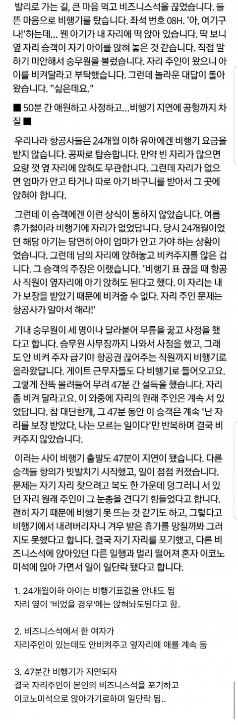 이거 주작 아닙니다..ㅋㅋ실제로 발리행 대한항공 지연됐었고 뉴스도있어요 너무 어이없어서 주작이라고 믿고싶었는데, 주작이 아닌거에 솔직히 젊은 애엄마들에대한 편견이 또생기네요..주작이라고 믿고싶으신분들 못믿겠으면 링크타고 기사보슈ㅋ https://mnews.sbs.co.kr/news/endPage.do?newsId=N1002085027 plink=OLDURL
