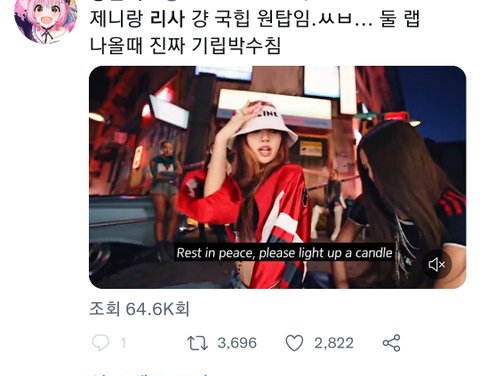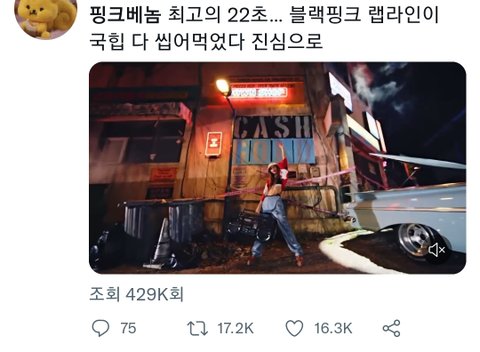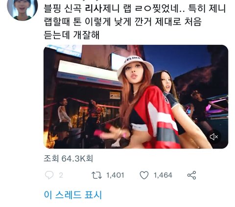 랩 미쳤다고 트위터에서 알티타는 중 블핑이 트위터에서 알티 타는거 처음인듯