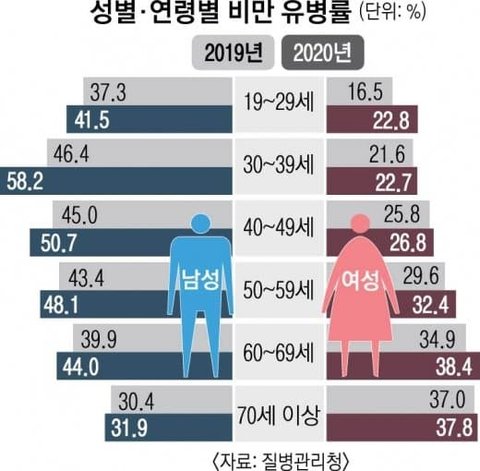 최근 한국남성 비만율