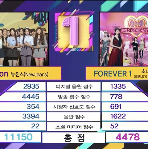 요번에 뉴진스가 음방에서 소시 이겼을때