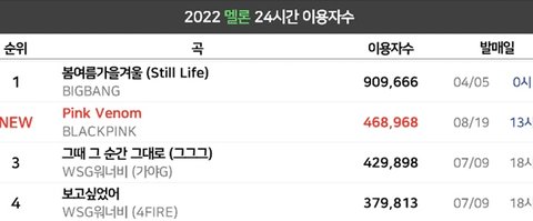 블핑 멜론 24시간 이용자수 2위