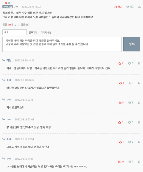 대댓 공감 진짜 잘 듣다가도 지수 목소리만 나오면 거슬림 모든 블핑 노래가