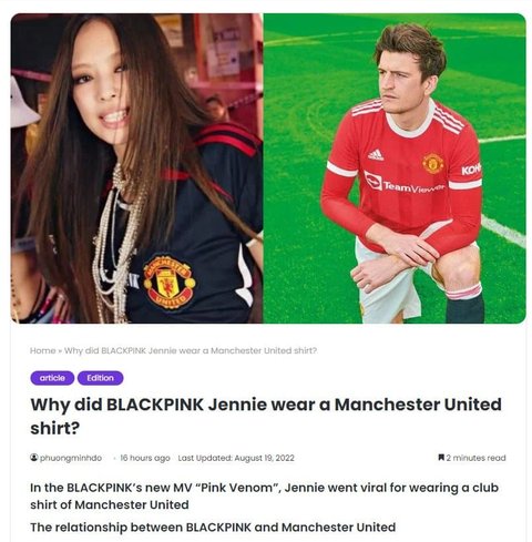 맨체스터 유나이티드 공식 사이트에서도 셔츠 설명을 제니의 셔츠로 바꿈