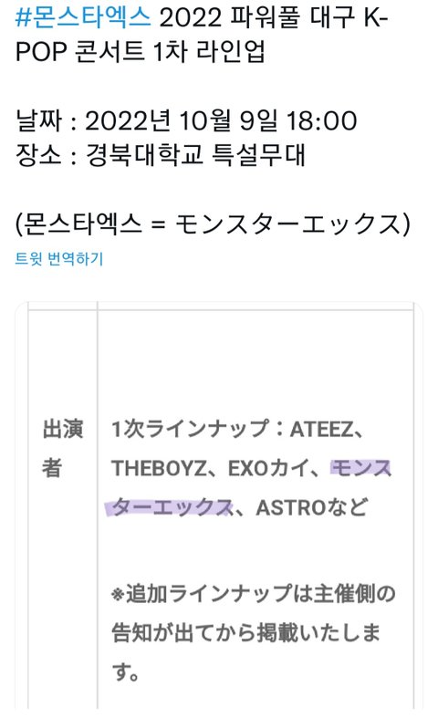 몬엑 2022 파워풀 대구 K-POP 콘서트 1차 라인업