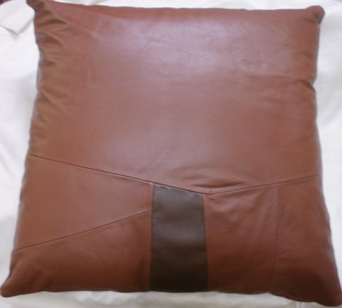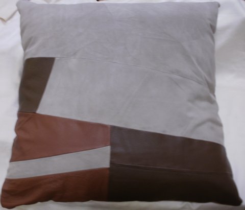 천연 가죽 조각을 이어서 제작한 가죽 패치 대형 쿠션입니다.(마디샤)