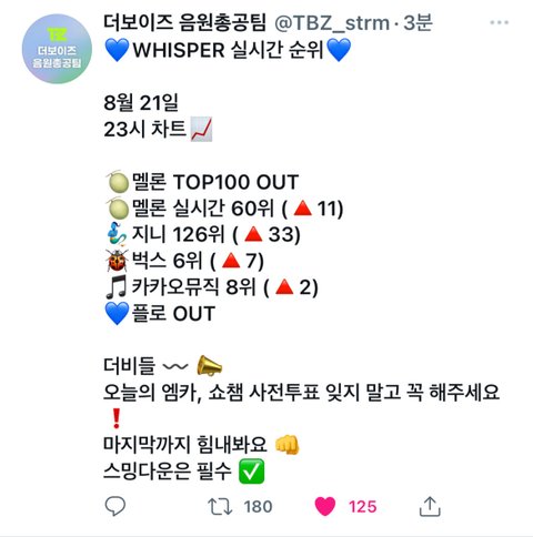 좀만 더 힘내자~!! 스밍 안 꺼졌는지 중간 중간 확인하구!! 더비들 파이팅~