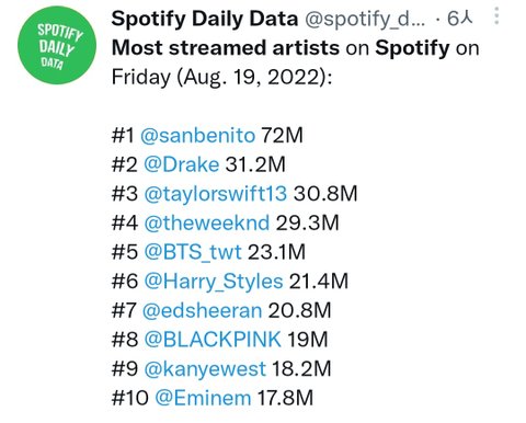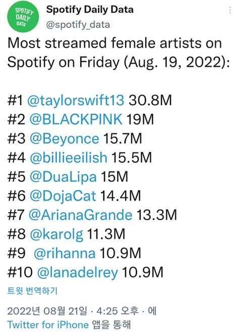 전체 아티스트 순위에도 들었음 오늘은!!