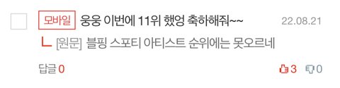 어제 아티스트 순위 10위권안에 못들었다고 뭐라한 어그로야 보고있니~~? 우리 8위했성~~~
