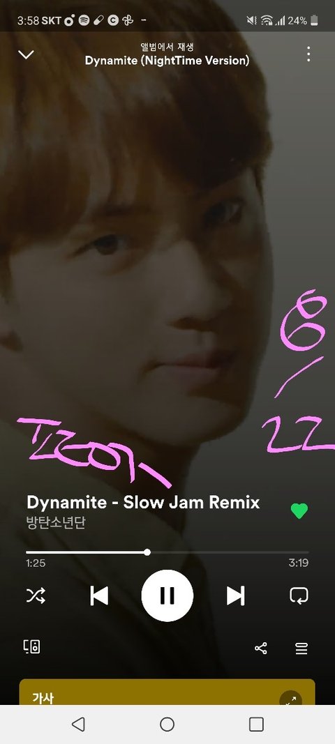 외랑둥이가 다이너마이트 2주년 축하하 스퍼티파이 순위 올린걸보고 나두 슴리 새로 짜서 듣는중ㅋㅋ