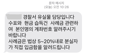 경찰서에서 연락 왔고! 보상 금액은 잃어버린 당사자가 측정해서 주는 거라 관여할 수 없다고 하심!! 그리고 5퍼센트인 돈을 사례금으로 받게 되었어요 ㅎㅎ