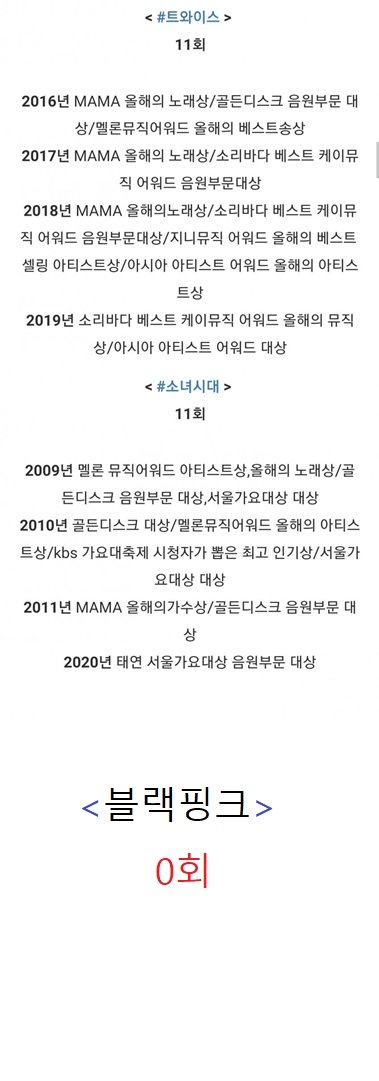 소녀시대 미쓰에이 투애니원 트와이스 레드벨벳 에스파등 잘나가는 여돌이면 무조건 있는 대상이 자칭 역대원탑 블핑만 없음
