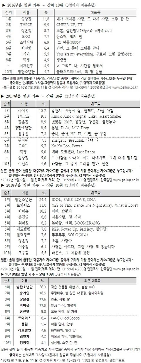 16~17은 말할것도 없이 트와이스고 블핑이 원탑먹었다던 18년도에서 블핑은 트레블중 꼴찌임