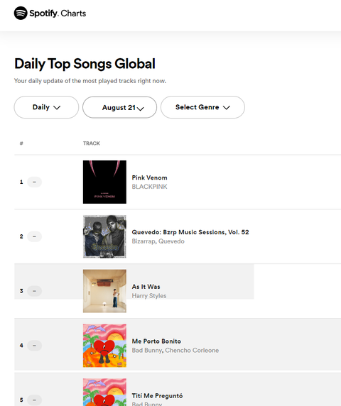 블랙핑크 이번 발표곡 Pink Venom가 스포티파이 글로벌 순위 3일 째 1위 함