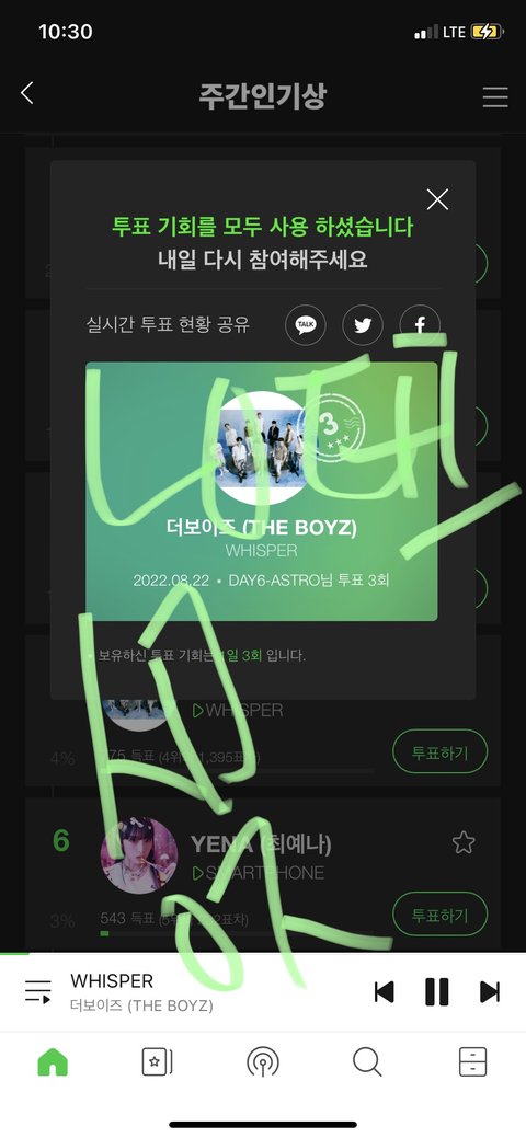 멜론 주간인기상 투표하장 ㅎ