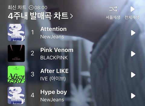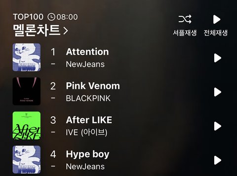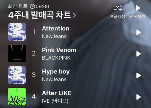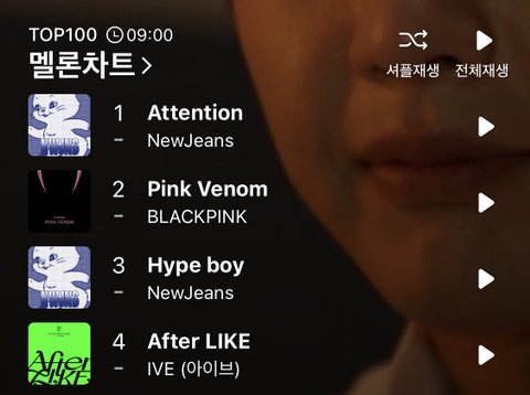 뮤비 공개한 지 15시간 지났는데 벌써 멜론 차트 4위