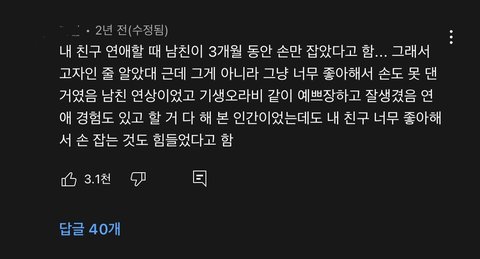 우연히 유튜브 알고리즘에 영상이 하나 떠서 보게 됐는데 저런 댓글이 있더라고 난 솔직히 이해 못 하겠음..
