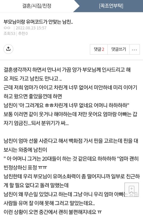 (원본지킴) 부모님이랑 유머코드 안맞는 남친