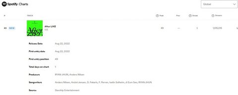 IVE 아이브 'After LIKE' 스포티파이 글로벌차트 진입 49위
