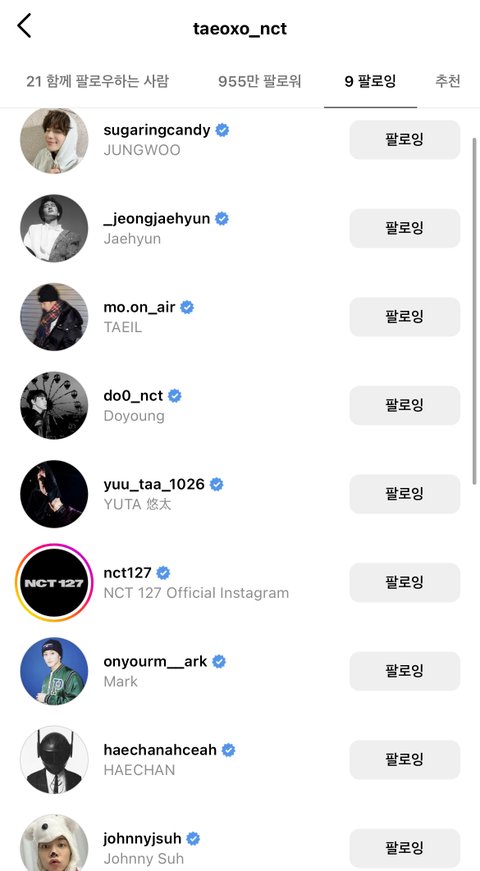 태용이 우리칠 다 팔로우했당ㅋㅋㅋ
