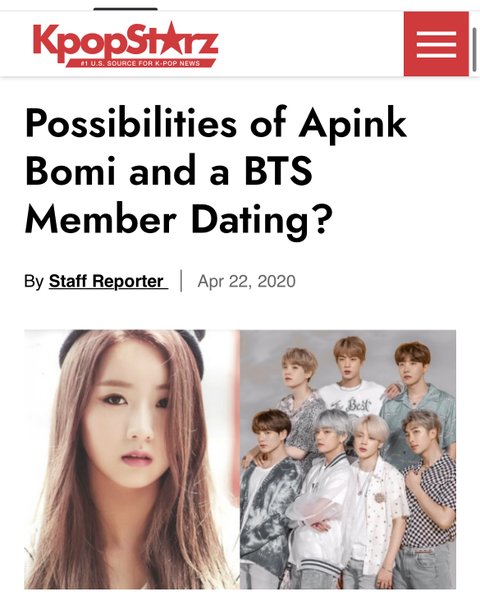 그리고 보미랑 방탄소년단은 잘 엮이지도 않는데 데이트 하는거 어떤 해외팬이 목격했다고 기사 올라왔는데 이슈가 안됨..