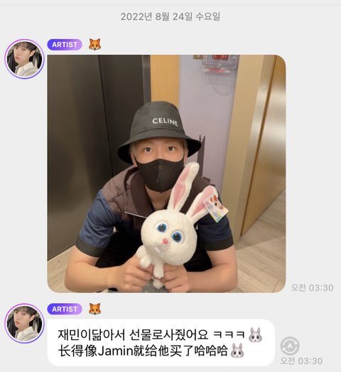 런쥔이가 토끼인형 재민이 닮아서 선물했대