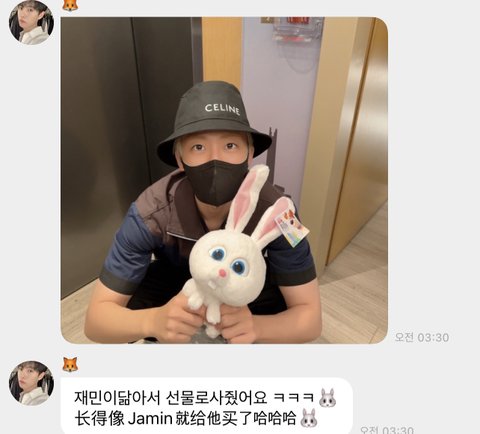 아까 저 토끼인형 재민이 선물같다고 한 사람 누구냐