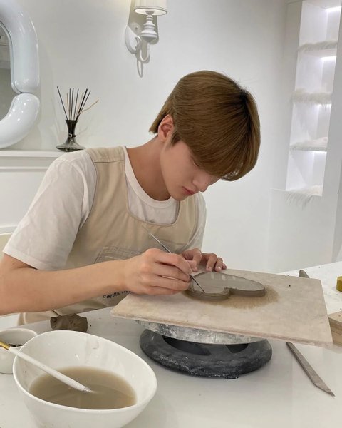 직접 만든 도자기에 팬덤명(=드리밍) 새겨주는 남자 어때?
