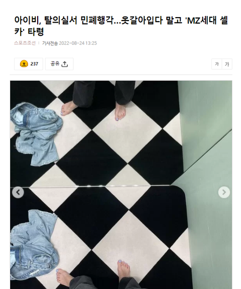 -뒤에 기다리는 사람이 있을 수 있으므로 개념없는 민폐 행동이다. 신속하게 옷만 갈아입어야 한다. 아이비는 공식 사과하고 자숙해야 한다 (반)