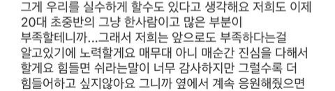 어릴때 데뷔해서 많은 사람들 앞에 서는 일을 하면서 얼마나 외치고 싶었을까 대단해보이지만 그냥 한 사람이었단걸..ㅜㅜ햇쨘아 꼭 행복해..